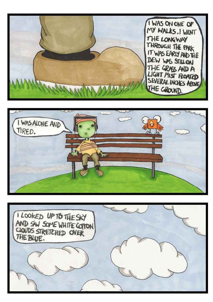 The comic is A5 in size and in full colour. I made the comic as the story is personal to me and draws on themes of belonging and love. The illustrations are enthused with passion and express my own personal thoughts and feelings.
