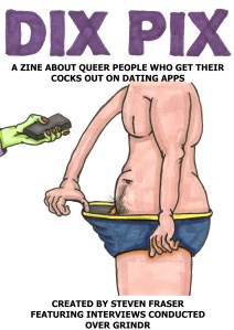 Dix Pix features illustrations of dick pics that were sent to me over the gay dating app Grindr. Along with the images there are text messages and exchanges that also occurred over the app.