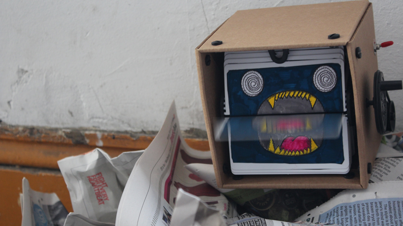 After thinking about space, puppets and the letters, I also created some props for the show. This included small boxes that presented mechanical flipbook animation. These props were created to draw the eye of the participant and lead them around the space. The final stage of the residency was a sharing to gather some feedback before I can present the show to an audience. Here I witnessed how people interacted with the puppets and moved around the space. I realised that people connected with the letters. It was very pleasing to see people sitting down and taking time to read what was written. Some participants also interacted with the puppets, but not in the harsh violent ways that were possible!