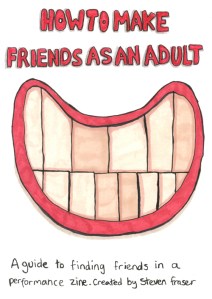 How To Make Friends as an Adult is a 28 page fully illustrated zine that presents the different steps a person can undertake to make friends as an adult. The zine uses humour to present a story of mental health, acceptance and queer culture.